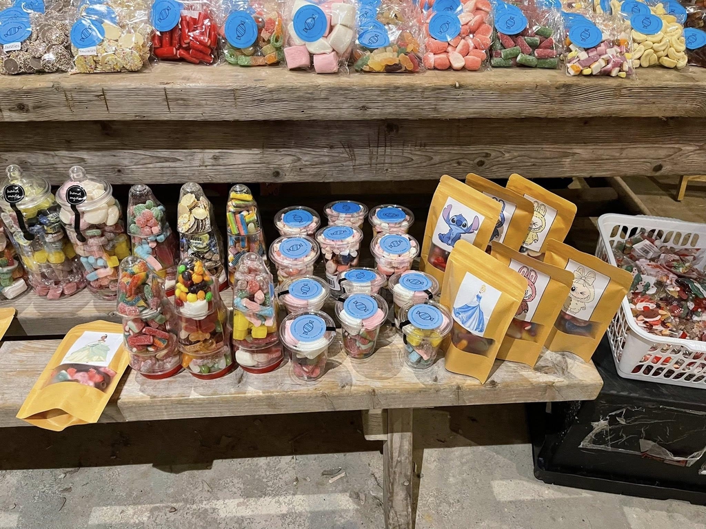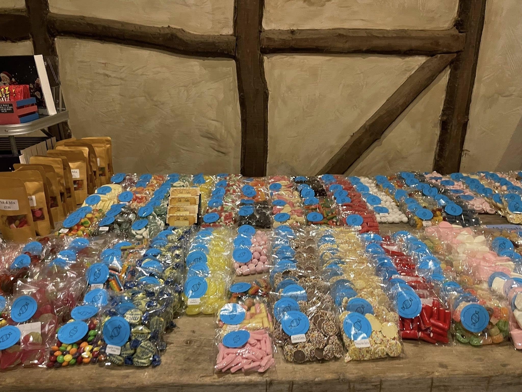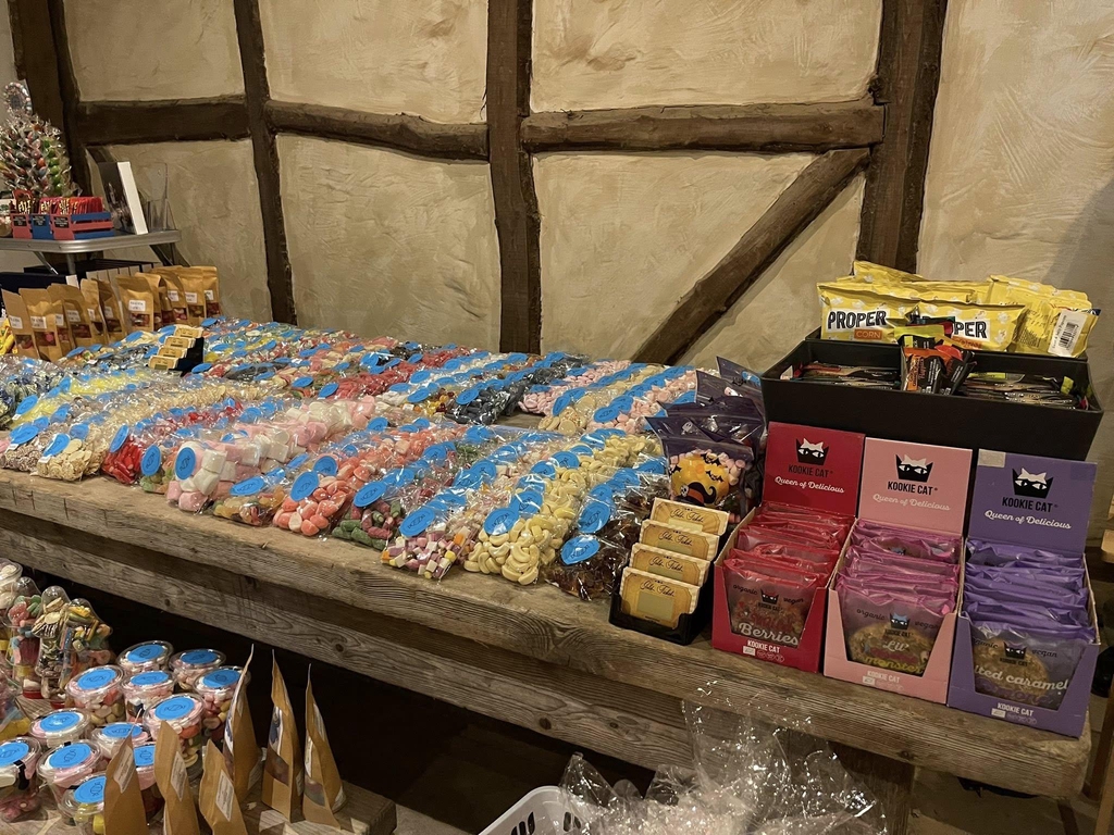 There is a big banner above the door you enter, Saying SWEET SHOP.